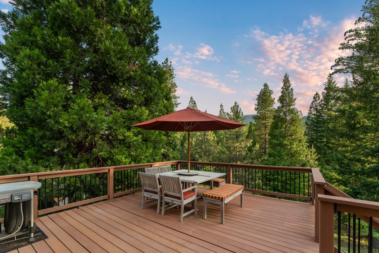 It’s warm and solid, with vaulted wood ceilings, expansive windows, and views that keep you oriented to the outdoors. The main living space is an inviting “great room” with two seating areas, an oversized kitchen, a huge dining space and a stone fireplace as its focal point. And that’s just for starters! Check out the website to see photos of the private primary suite, guest bedrooms, office, rec room, and more.